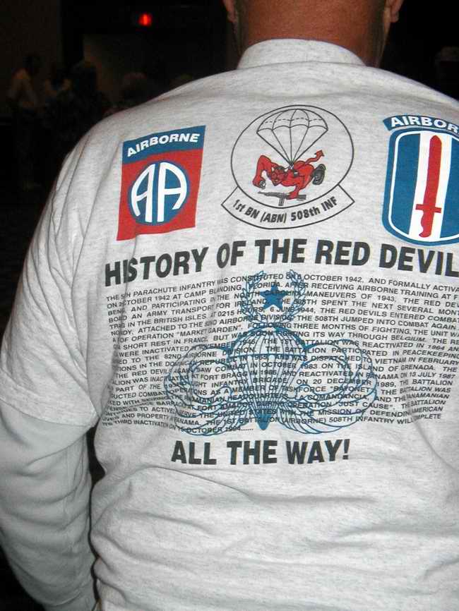 Tom sports a T-shirt that must be the envy of many. Note the original 508th Infantry Regiment insignia. |
