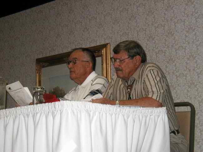Norb Studelska and Bob Speers listen closely as others give their reports.