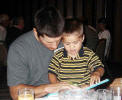 Angel Romeo's son-in-law and grandson have rapt attention to a book. |