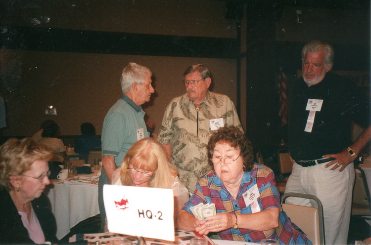 Bob Speers chats with two men while Pat Ott, Alana Speers and Jean Manion count the cash
