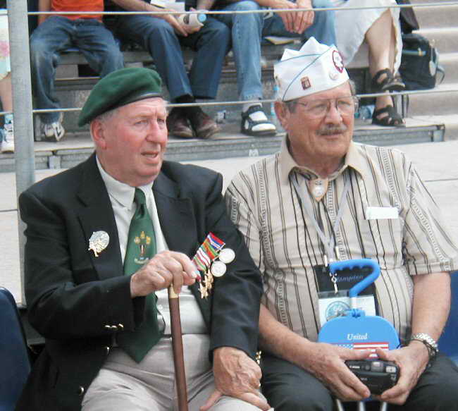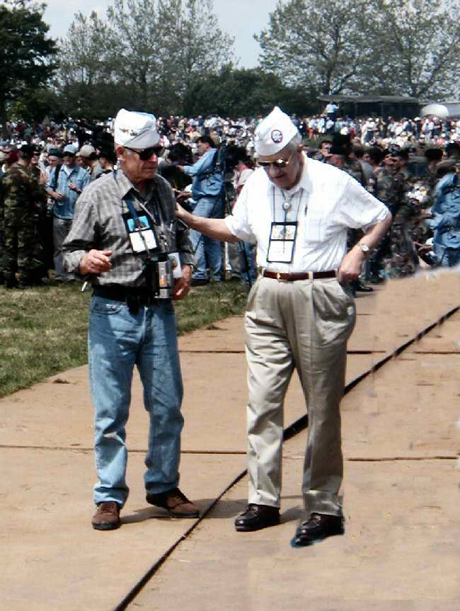 Allies Still Keith Gardner {L], veteran of the British Royce Marine Commandos (30 AU) and Bob Speers found lots to chat about as Gardner's group met up with the 82nd near Ste. Mere Eglise