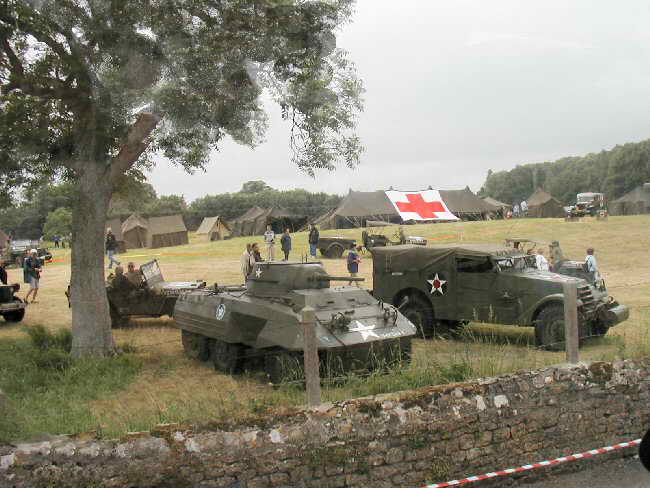 M.A.S.H Tent as a personal possession is easy to accept, but a U.S. Army tank and a German weapons carrier? That's impressive!. |  Tents and Vehicles in profusion at this, and other, encampments almost felt as though the war was still underway |  Service Vehicle and field ambulance were among the many vehicles that had been meticulously restored |  Reflections "Why did they call that a Duck?" ponders Tsugi O'Donnell, as Bus-5 rolls past the encampment |