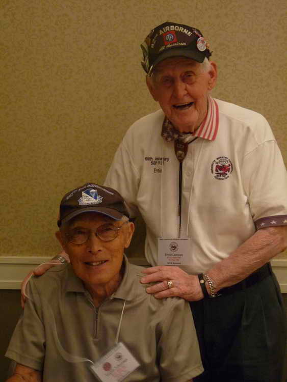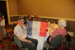 Ernie Lamson show off a French flag signed by his host family in Normandy
