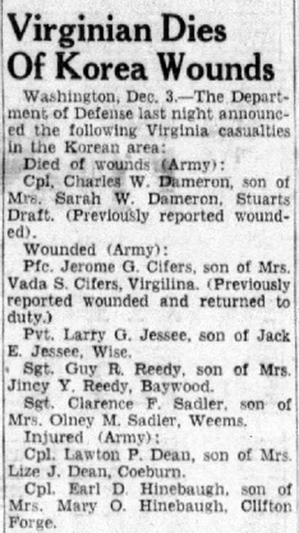 was also reported in the Daily Press, Newport News, VA, Monday, December