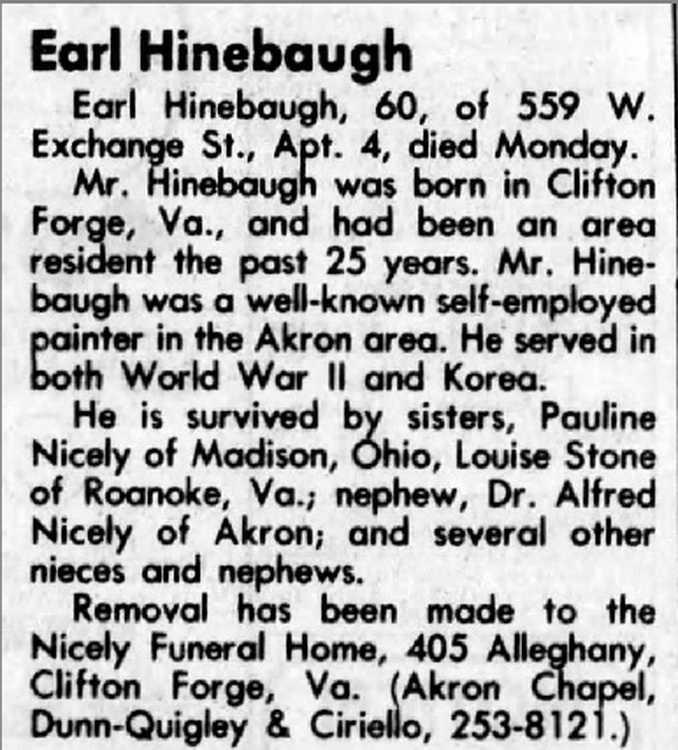 Hinebaugh in Section II, Row 8, Grave 44, Sharon Baptist Church