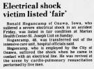 Ronald Hogancamp of Onawa, Iowa, who suffered a severe electrical shock in an accident Friday, was listed in fair condition at Marian Health Center-St. Joseph Unit on Sunday.
