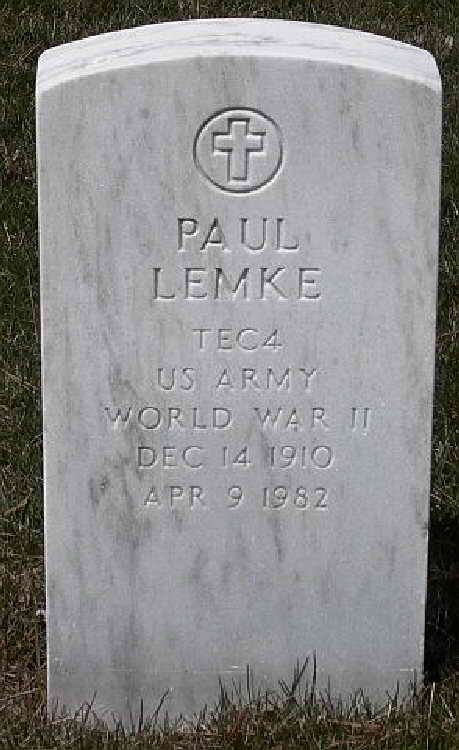 Grave marker for Paul F. Lemke in Plot: A, Grave 102 of the