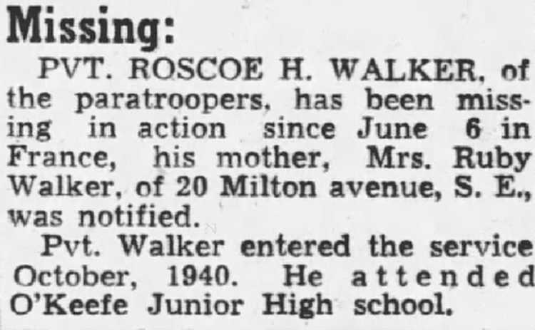 ROSCOE H. WALKER, of the paratroopers, has been missing in action