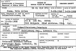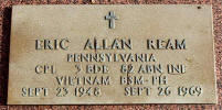 Record of Veteran Burial and grave marker for Cpl Eric A. Ream in Schaefferstown Cemetery,