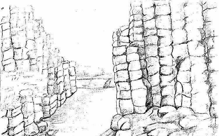 of hexagon shaped-rocks and all orations are about one foot across and varies