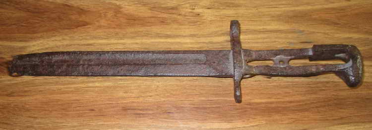 A rusted bayonet was given to Fritz Blum by a M. Leprelle, whose farmhouse he and his brother stayed in. It was found by Leprelle when digging in his pasture. Fritz thinks it may have been for the M1 Garand but isn't sure. Perhaps someone may be able to identify it. If so, please write to Jumpmaster |