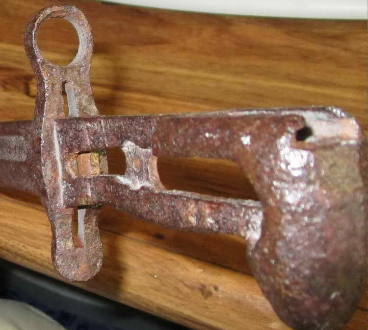 ![]() Close-up of Hilt wooden grip material was eroded away |