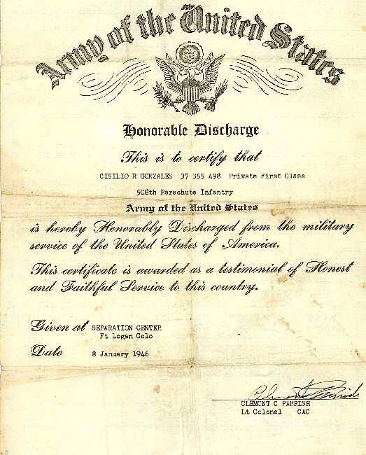 Cisilio Gonzales returned to civilian life after the war and took his place in the American workforce. He passed away on January 14, 1983. (Read Biography) |
