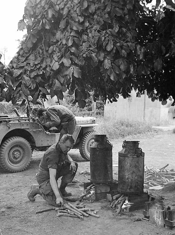 been impossible just weeks before. Two milk cans should hold a lot of whatever he is preparing.