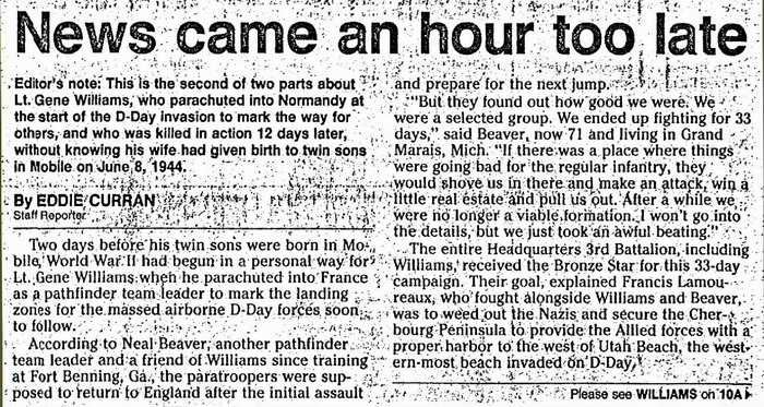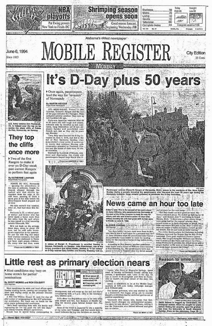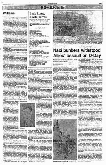 anniversary of the D-Day Invasion Gene's hometown newspaper, the
