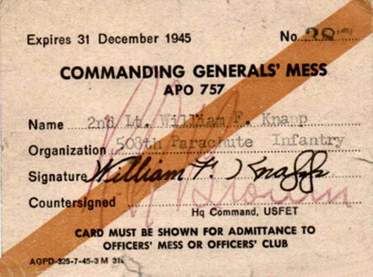 this card, issued in December 1944 to Lt. Combs, was only used until