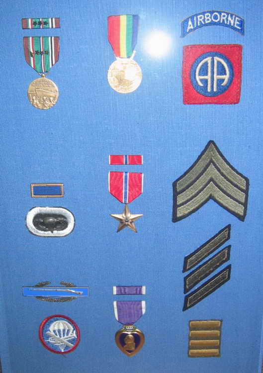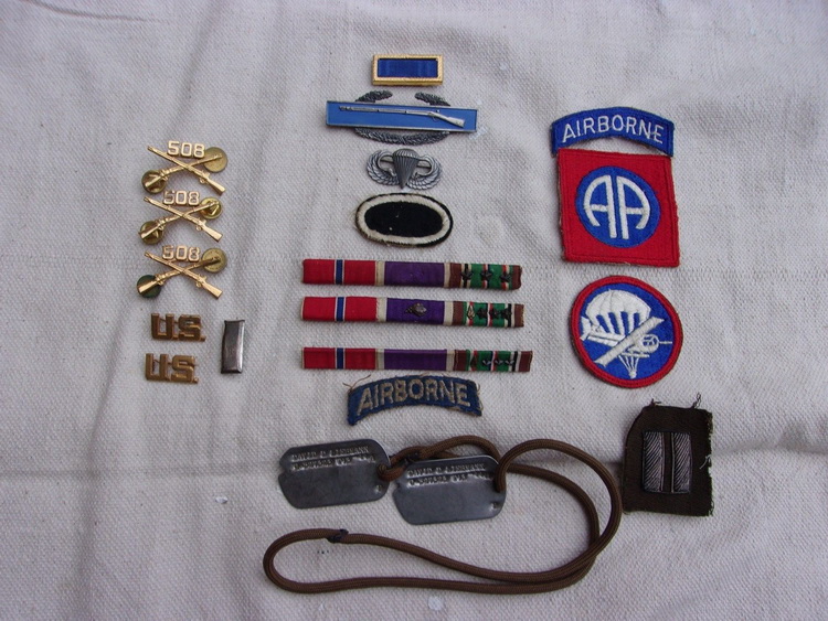 includes Parachutist badge, 82nd Airborne insignia, and medals for