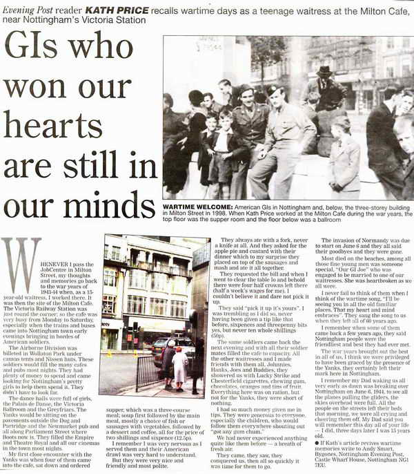 WARTIME WELCOME: America G.I.s in Nottingham