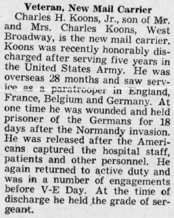 Koons, West Broadway, is the new mail carrier.
