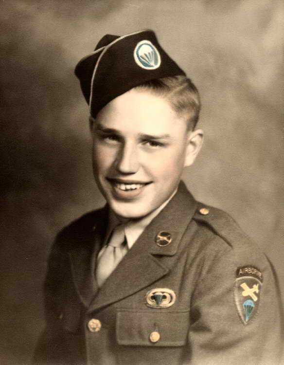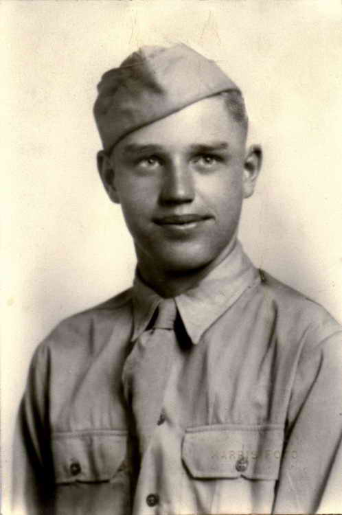 Pvt Daum home on leave from Camp Mackall, 1943. He was KIA on 8 Jun 1944