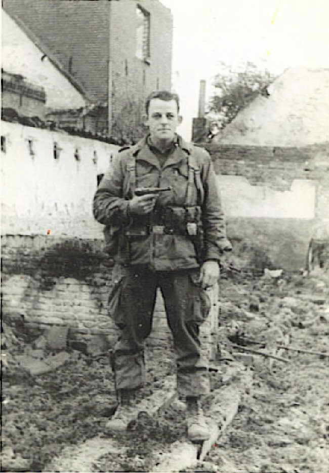D Co. sports a German Luger pistol somewhere in Holland, 1944. 508th vet Roger Kitchen recalls "Joe was a replacement in Holland and