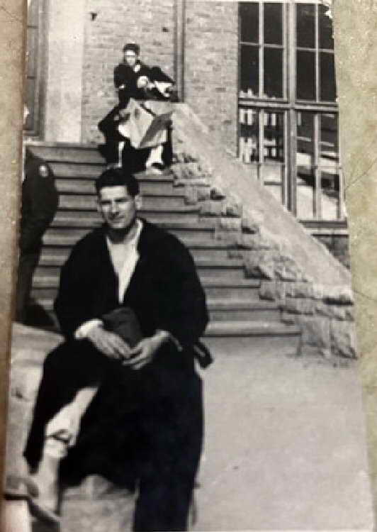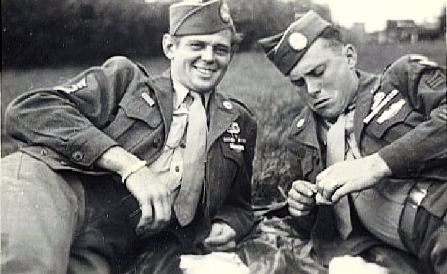 T/Sgt Roger L Kitchen (L) and S/Sgt Clemon C. Crain Photo taken in Frankfurt, Germany August. 1, 1945