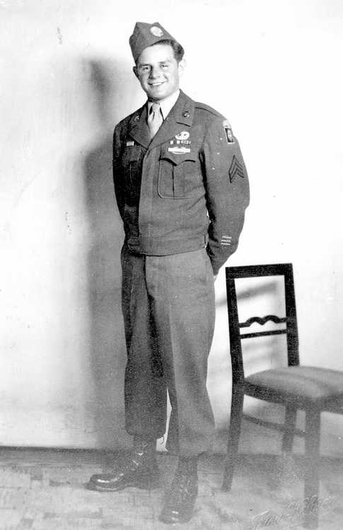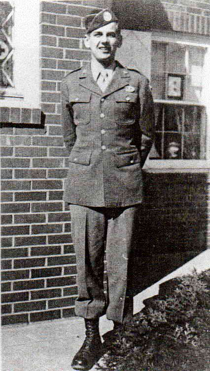 Pvt Robert A. Morgan home on leave after jump school, 1943