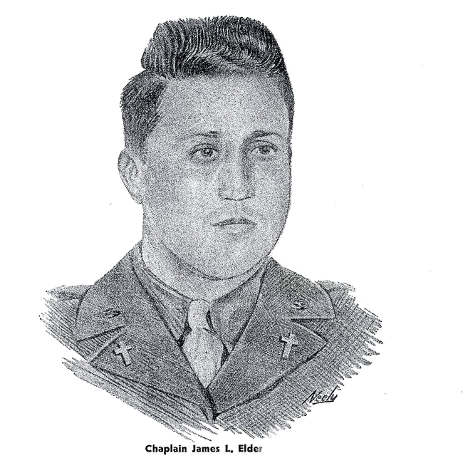 Chaplain James L. Elder (Charcoal drawing by "Neely" as it appeared in the August 7, 1945 edition of the
