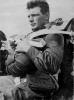 a photographer attached to the 508th, shows off his captured Luger pistol