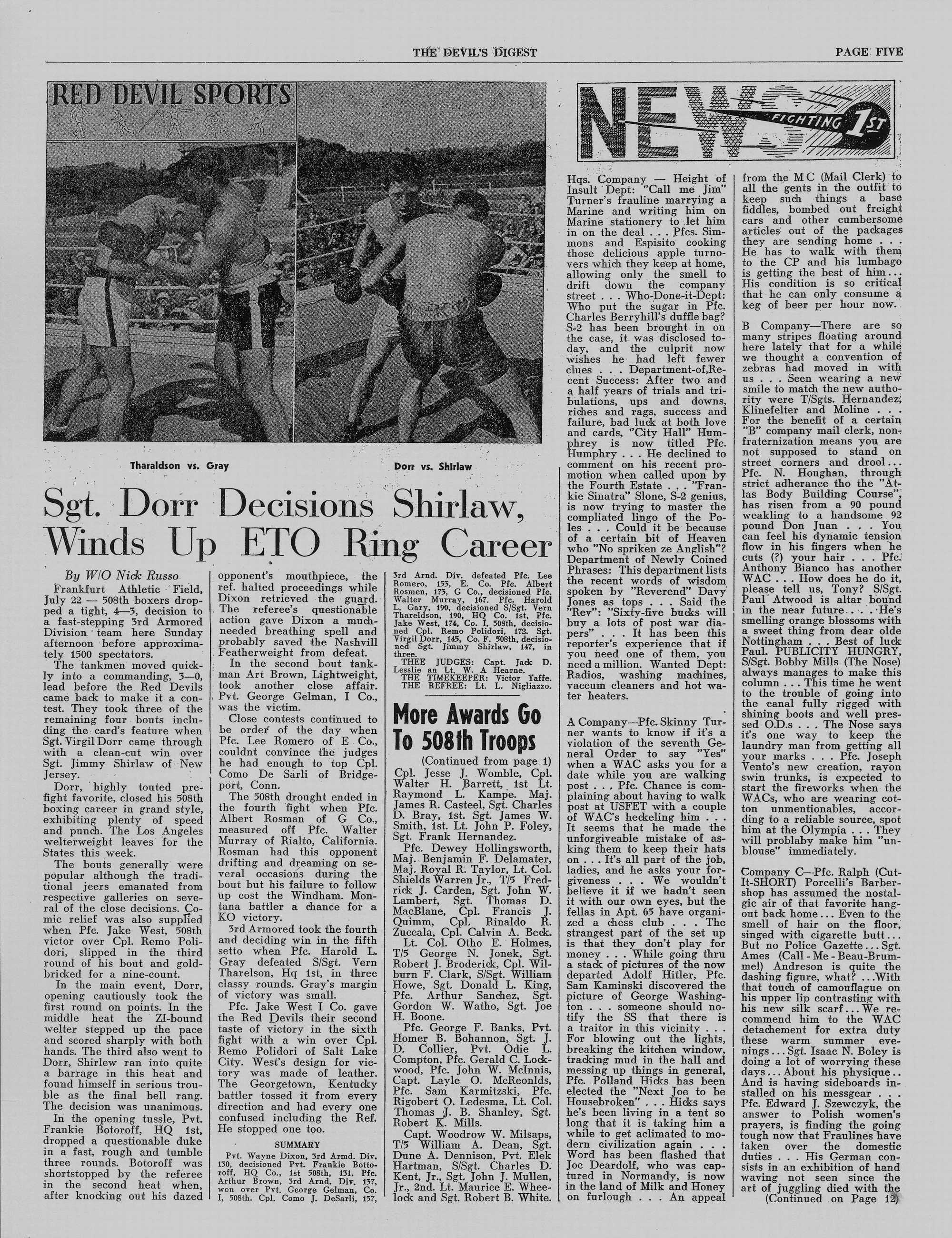 Sgt. Dorr Decisions Shirlaw, Winds Up ETO Ring Career |
