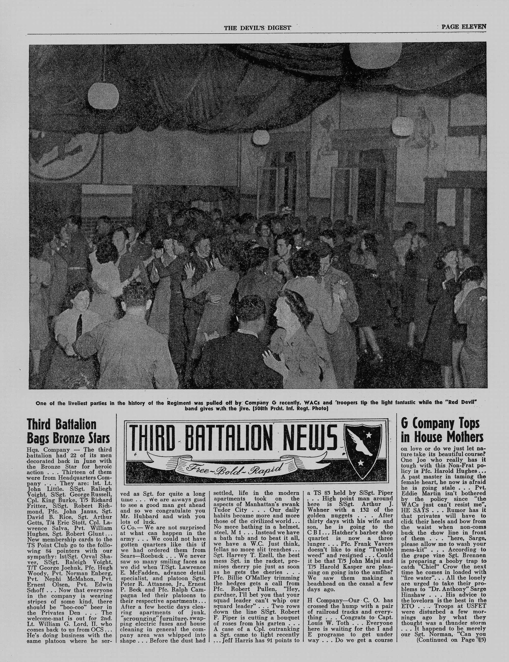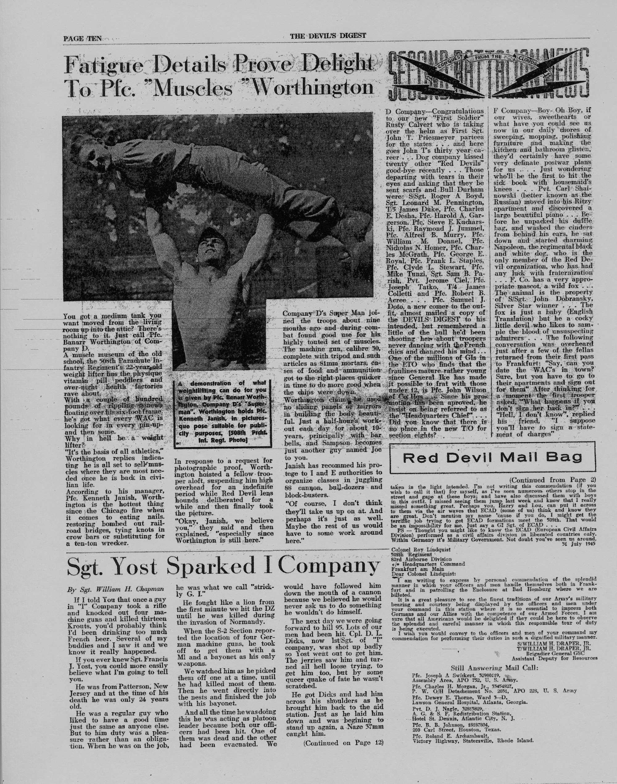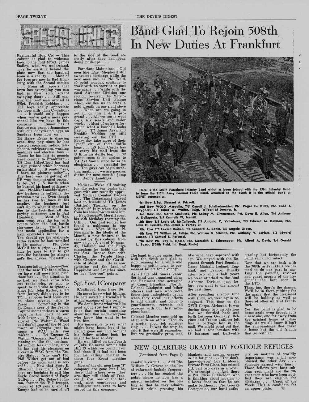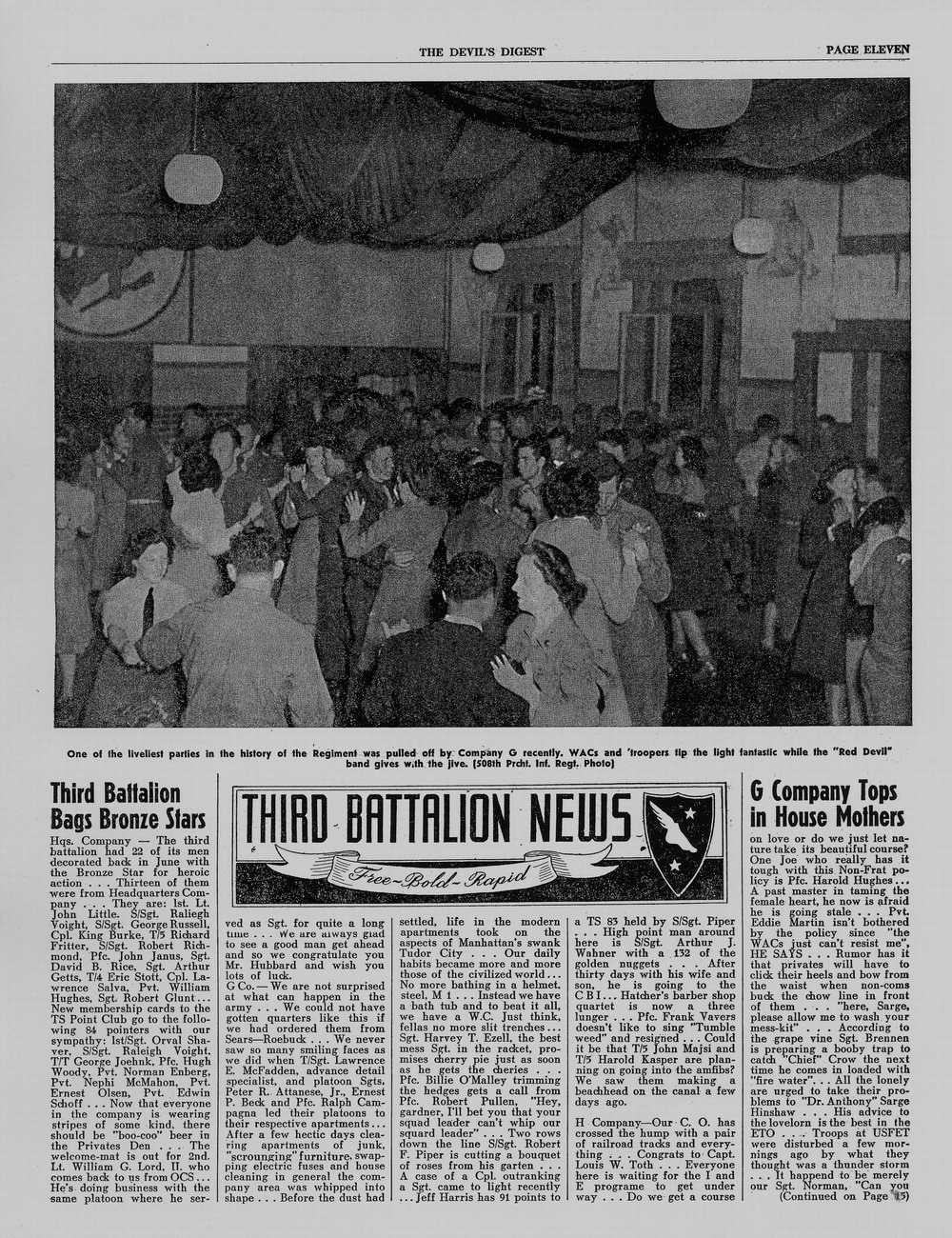 Fatigue Details Prove Delight To Pfc. "Muscles" Worthington |  HEADLINES (click for high resolution) Third Battalion Bags Bronze Stars |  HEADLINES (click for high resolution) Band Glad To Rejoin 508th In New Duties At Frankfurt |