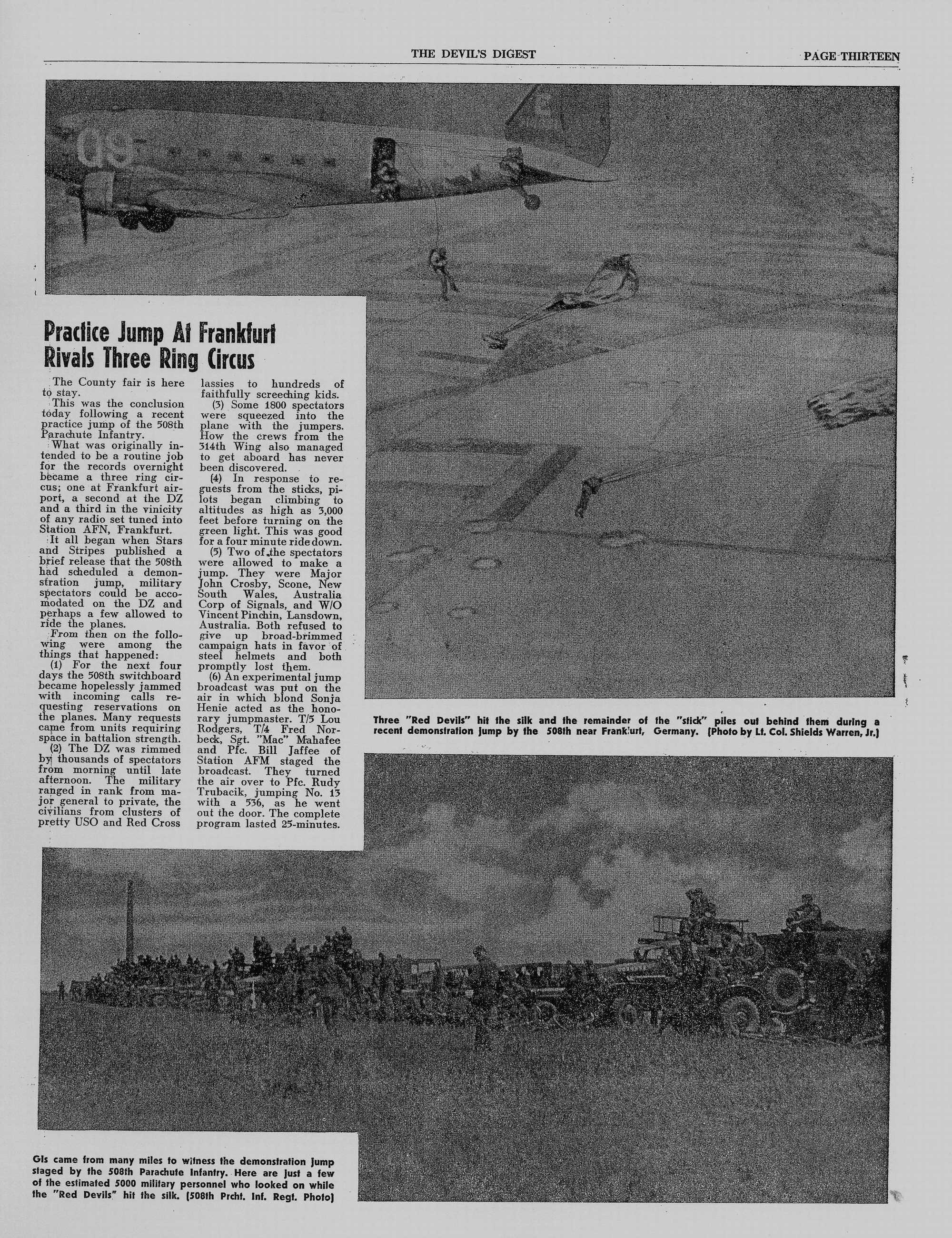 HEADLINES (click for high resolution) Practice Jump At Frankfurt Rivals Three Ring Circus |