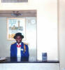 clerk in the hotel's signature attire |