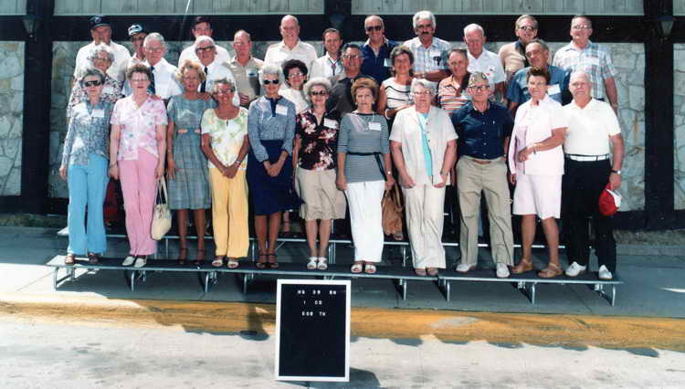 all are unidentified except O.B. and Margaret Hill (2nd row, 3rd & 4th from right)