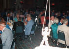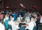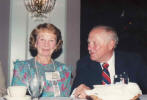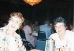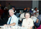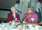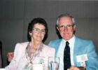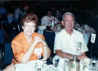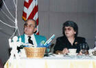 Jim Smith & Betty White hold St Mere Eglise stained glass, one of many raffle prizes