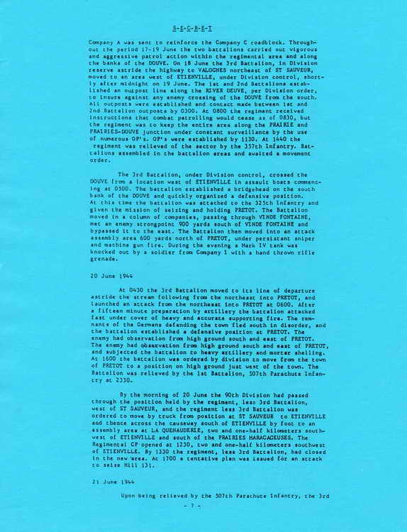 banks of the DOUVE. On 18 June the 3rd Battalion, in Division reserve