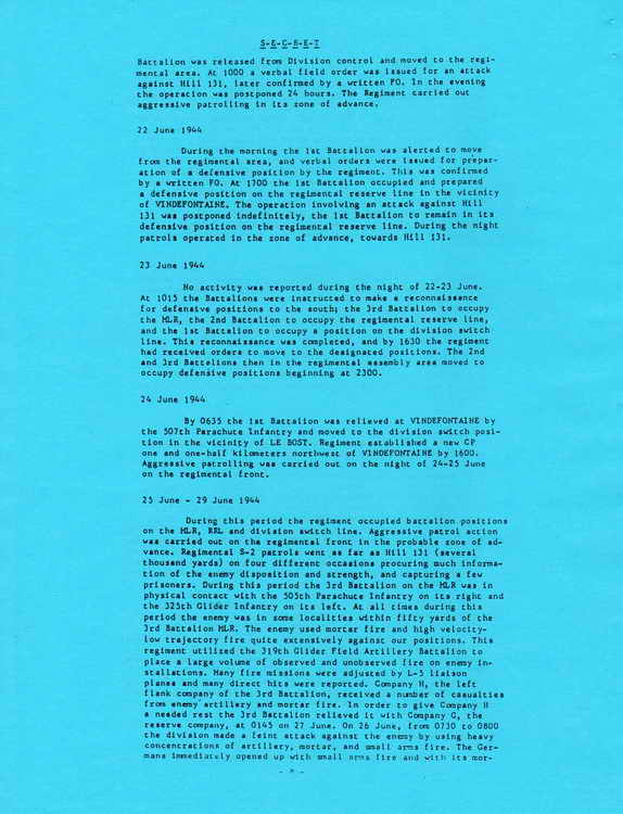 By 0635 the 1st Battalion was relieved at VINDEFONTAINE by the 507th