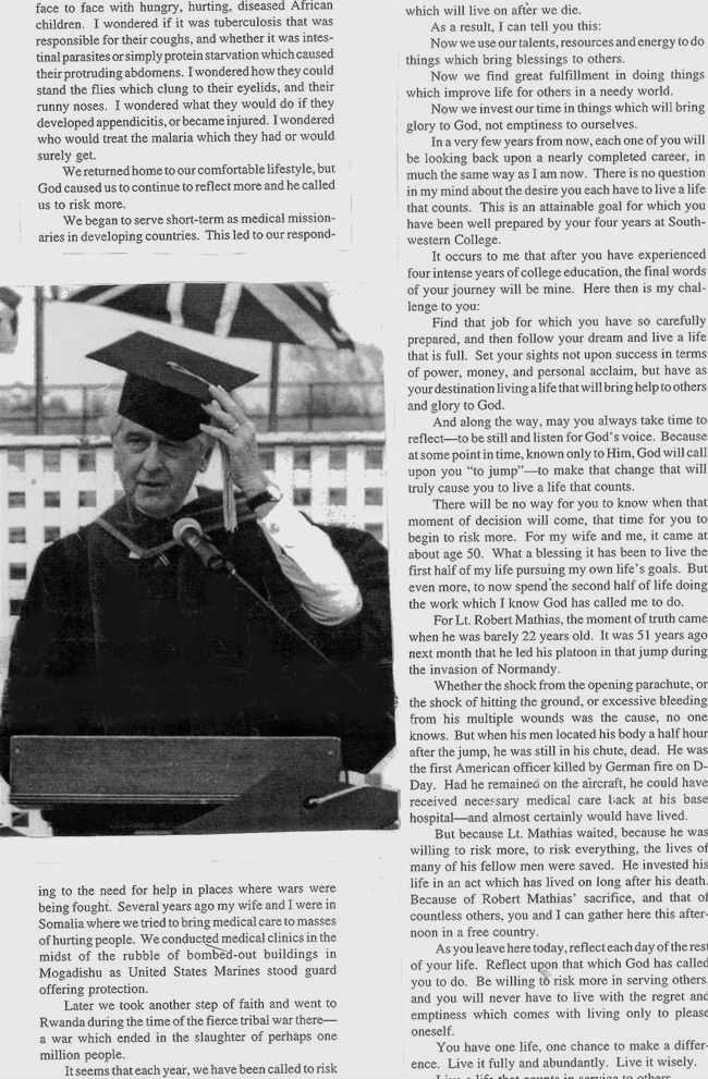 contain part of a keynote address with mention of Captain Robert Mathis's