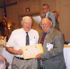 after he marched to the podium with his cane at “shoulder arms” to accept