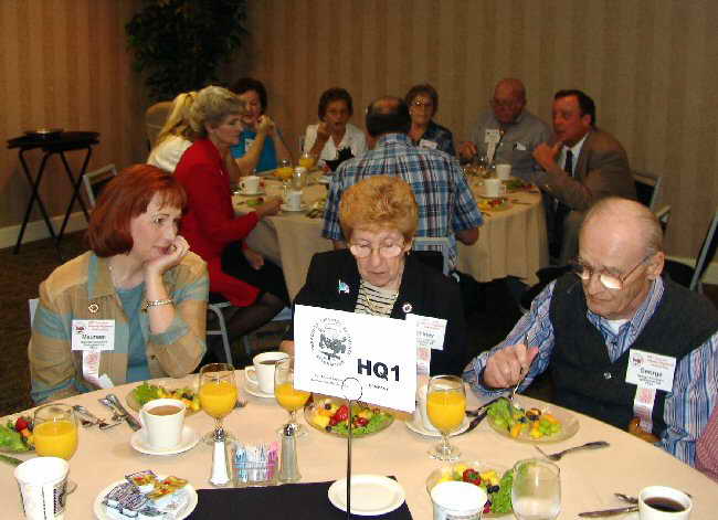 The Stoeckerts (l-r) Maureen, Shirley and (Hq1Company Rep) George |  HQ 1 Table (l-r) Allean and Van Walker, Bob Combs (nephew of O.B. Hill) |  Bob Combs (nephew of O.B. Hill), Joe and Becky Bressler (HQ1) |  Jerry, David and Cheryl Merritt |