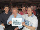Chalk 18 was the aircraft designation for the 3rd Bn. Pathfinders headed for Normandy. Survivors (front, l-r) John Sternesky and Francis Lamoureux (both of Co G) hold the now famous photo of their air crew and stick just before takeoff. Sons of Lt. Gene Williams (I Co, KIA) stand in back (l-r) Gene, Jr. and Jack Williams.
