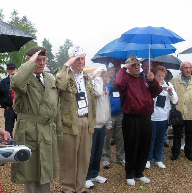 No Longer Just Pen Pals Ernie Lamson[2nd from left] stands next to Claude Billiet [in beret]. They had corresponded while planning this event but had never met in person.