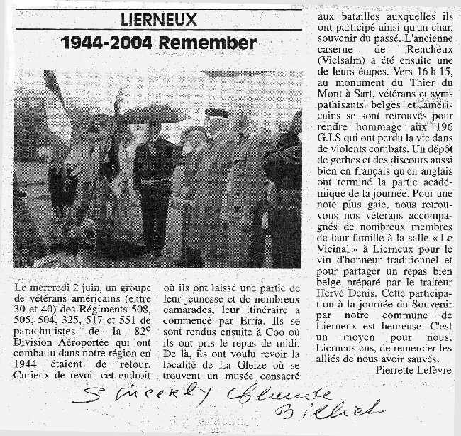 WEDNESDAY, JUNE 2, 2004 GRAND SART, BELGIUM - THEIR DU MONT MEMORIAL