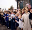 Main Street was lined with children making sure that we knew just how welcome we were (Photo courtesy Ellen Peters)