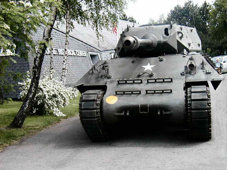 Bastogne Historical Center Featuring a wide array of artifacts, this museum has excellent display tableau |  No Parking Enforcement? This vintage tank looks as though it means business! | "Old Blood and Guts" Usually seen sporting his famed pearl-handled revolvers, George S. Patton ]1885-1945)], although recognized as one of the most outstanding generals of his time, was a controversial figure. Ironically, he was the victim of a motor vehicle accident after the war ended. He is buried in the American Cemetery and Memorial in Hamm, Luxembourg. (Biography)