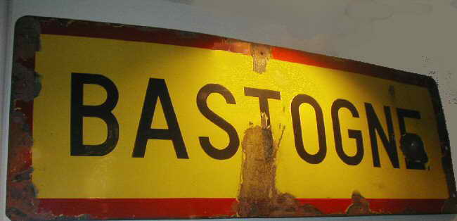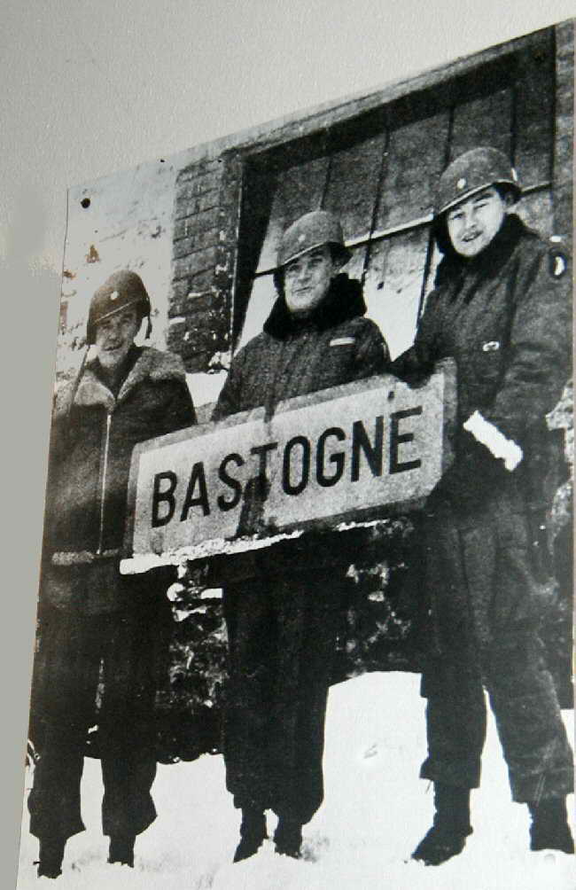 Famous Photo Three G.I's holding Bastogne city sign after the siege was over