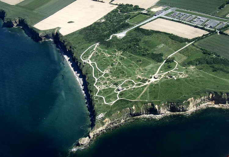 Aerial View affords a glimpse of the cliffs that were scaled on D-Day. Also