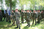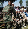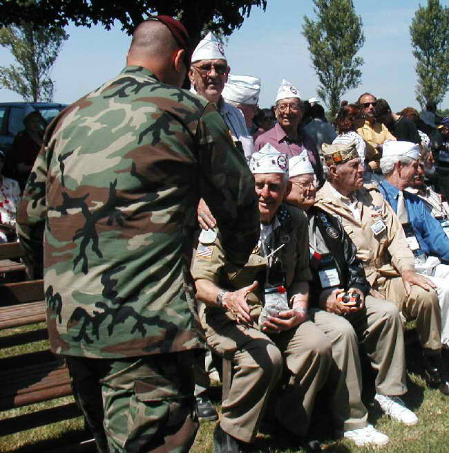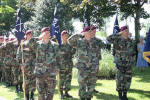 |  Brotherly Exchange Erie Lamson makes a presentation to members of today's 508th, B Co. |  Thanks and Farewells Color Guard member shakes hands with Ernie Lamson |