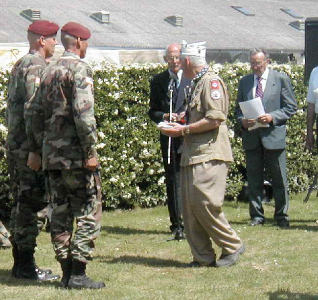 |  508th PIR was there in force. Note Guidons for 1st Bn, HQ 1st and Companies A & B. Company CO's Captains Smith, Ethridge and O'Connor are in the front row. All wear the CIB and Parachutist wings, Smith has a jump star to his credit (Photo courtesy Patrick Elie)