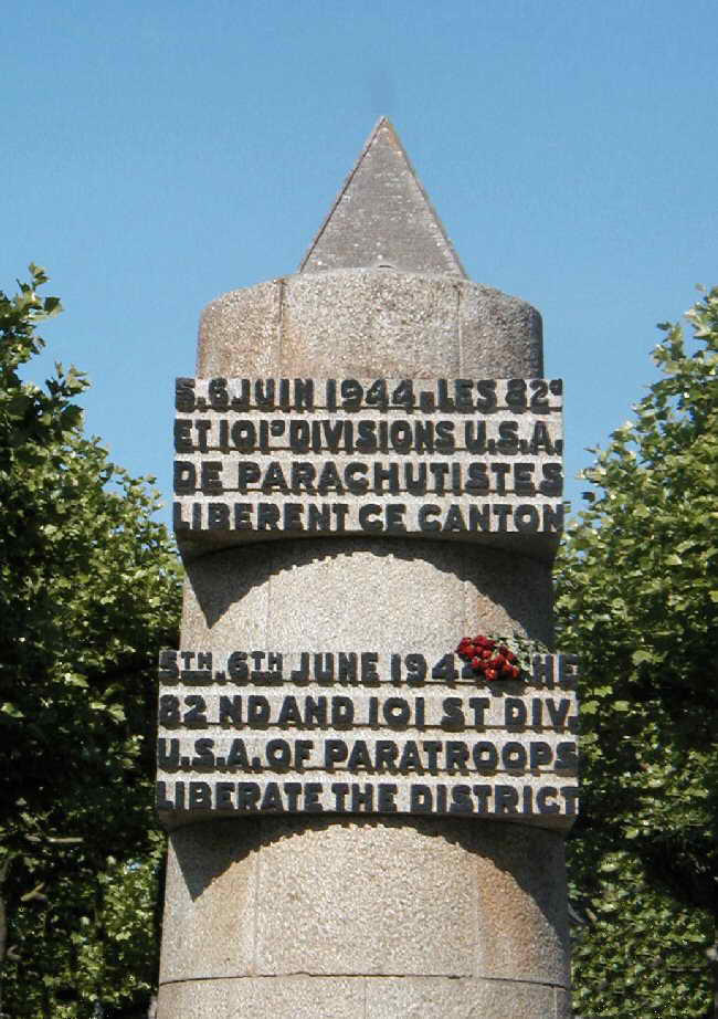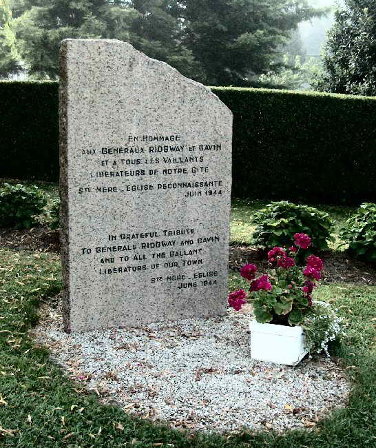 Mutual Memorial in tribute to Generals Gavin and Ridgway and all the gallant liberators of Ste. Mere Eglise on D-Day (Photo courtesy Liz Coble)